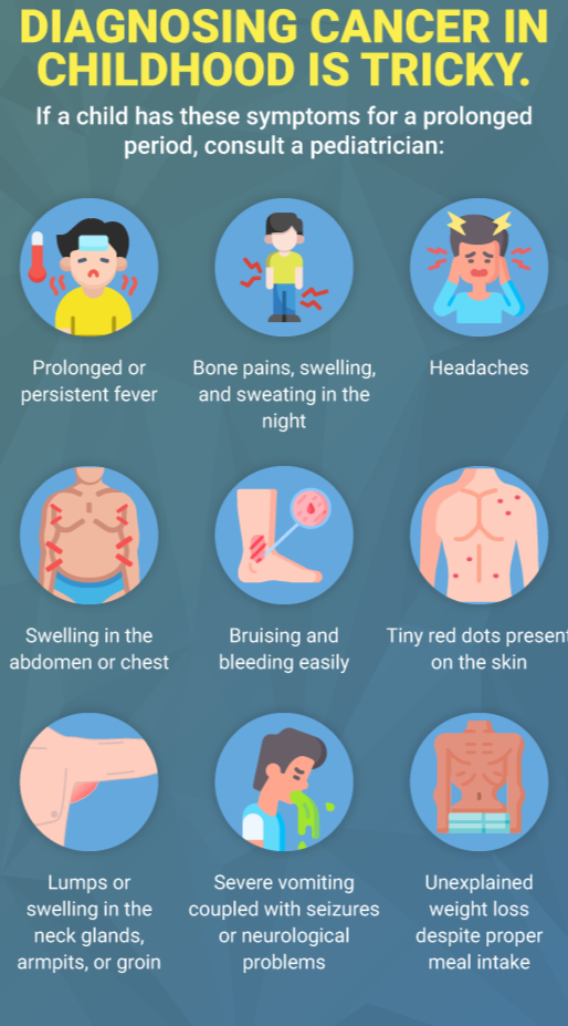 Childhood cancer symptoms can be subtle and often mistaken for common illnesses. Parents and caregivers should be aware of warning signs such as: